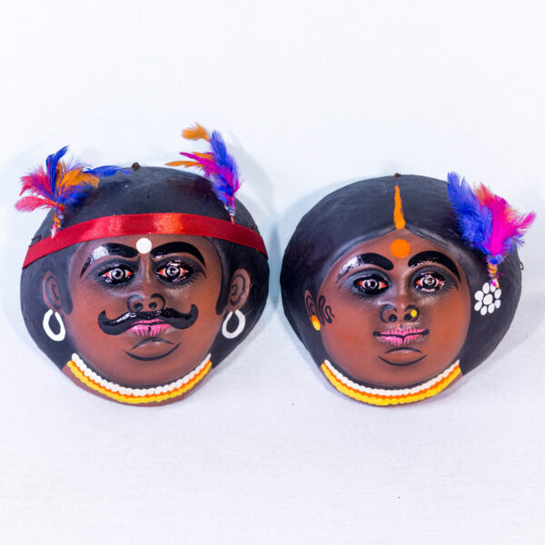 Tribal Mask Pair, 6 inch, Paper Pulp, Purulia, Handmade Wall Hanging Tribal Mask Pair, 6 inch, Paper Pulp, Purulia, Handmade Wall Hanging