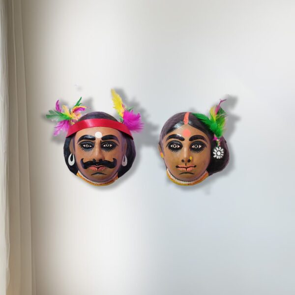 Tribal Mask Pair is a beautifully handcrafted wall hanging from Purulia. Made from paper pulp, these masks showcase traditional tribal designs with intricate detailing and vibrant colors. Perfect for adding a touch of ethnic charm and cultural heritage to your home decor, this handmade pair reflects the unique artistry of Purulia’s tribal craftsmanship.